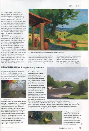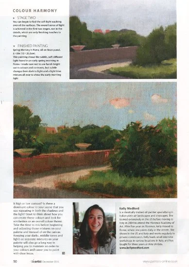 In The Artist Magazine they like you to pick a painting to demonstrate the topic you are talking about, so I chose a small painting done on a spring morning here in Rome.