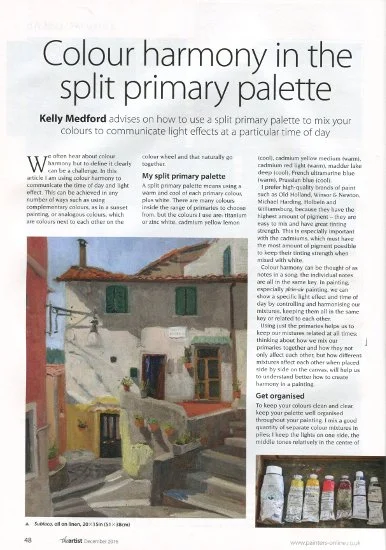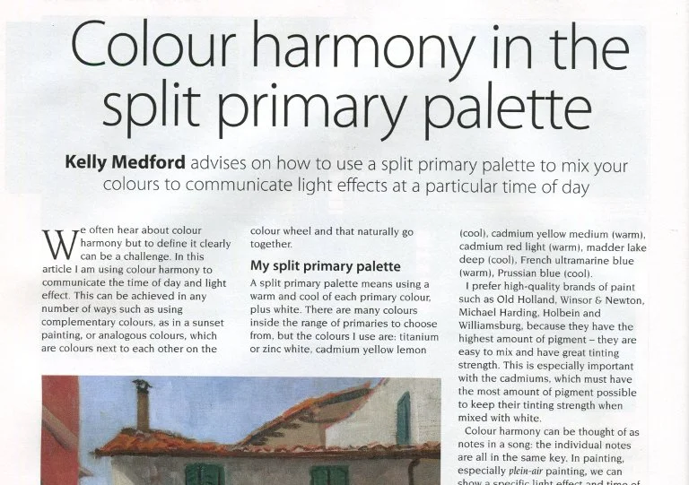 I am happy to share with you a feature article I wrote for the UK magazine The Artist. The article is for painting geeks and is entitled, “Color Harmony in the Split Primary Palette.”